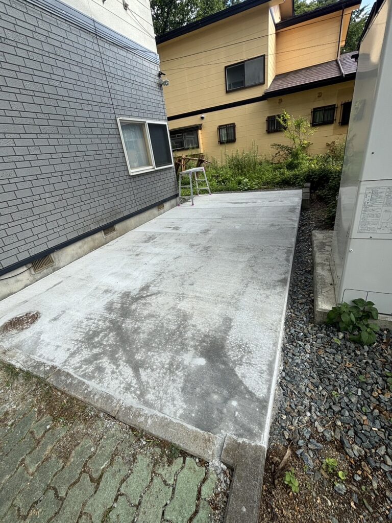 💬外壁の色に合わせてコンクリート舗装をされたお施主様。お子さんが三輪車で遊びやすくなったと喜ばれておりました🎵