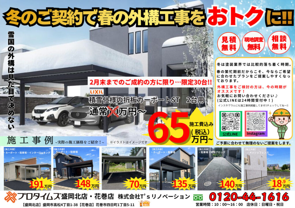 無料点検・除雪・排雪のご相談も、プロタイムズ盛岡北店・花巻店までお気軽にお問い合わせくださいませ!!