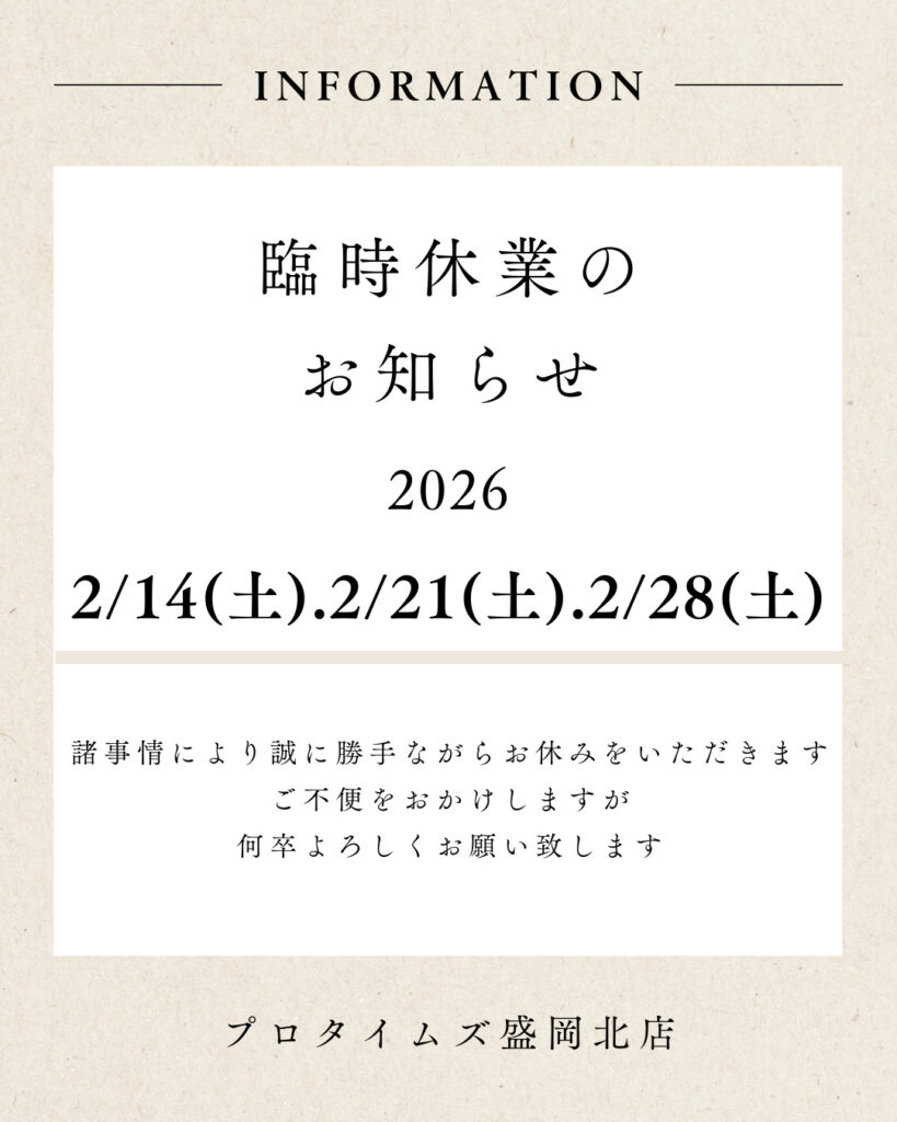 【盛岡北店】2月臨時休業のお知らせ🙇🏻♀️