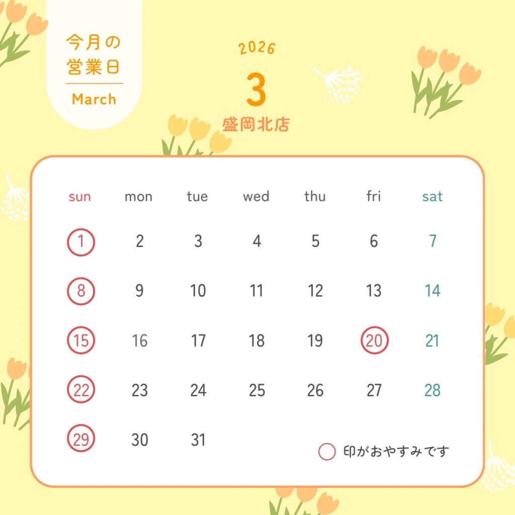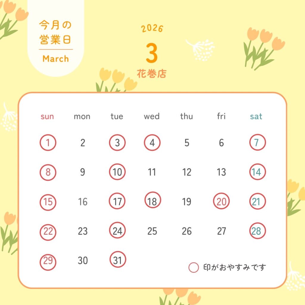 🌸3月の店休日のお知らせです🌸