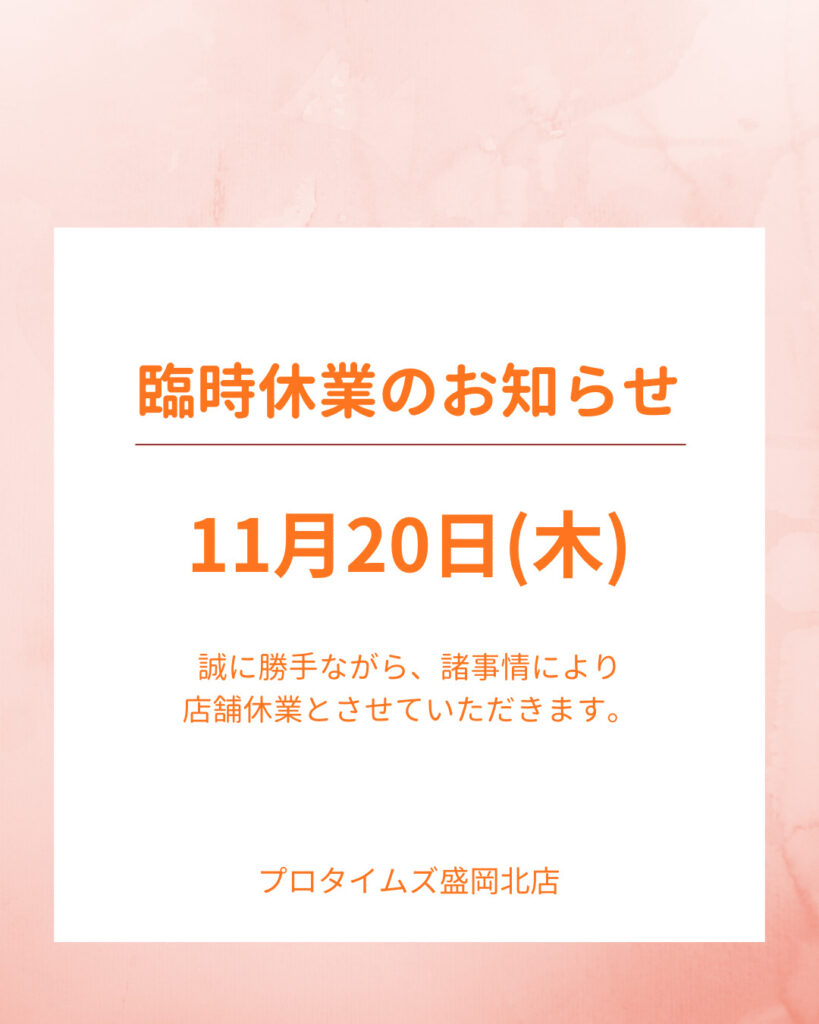 盛岡北店🏠臨時休業のお知らせ(11/20)