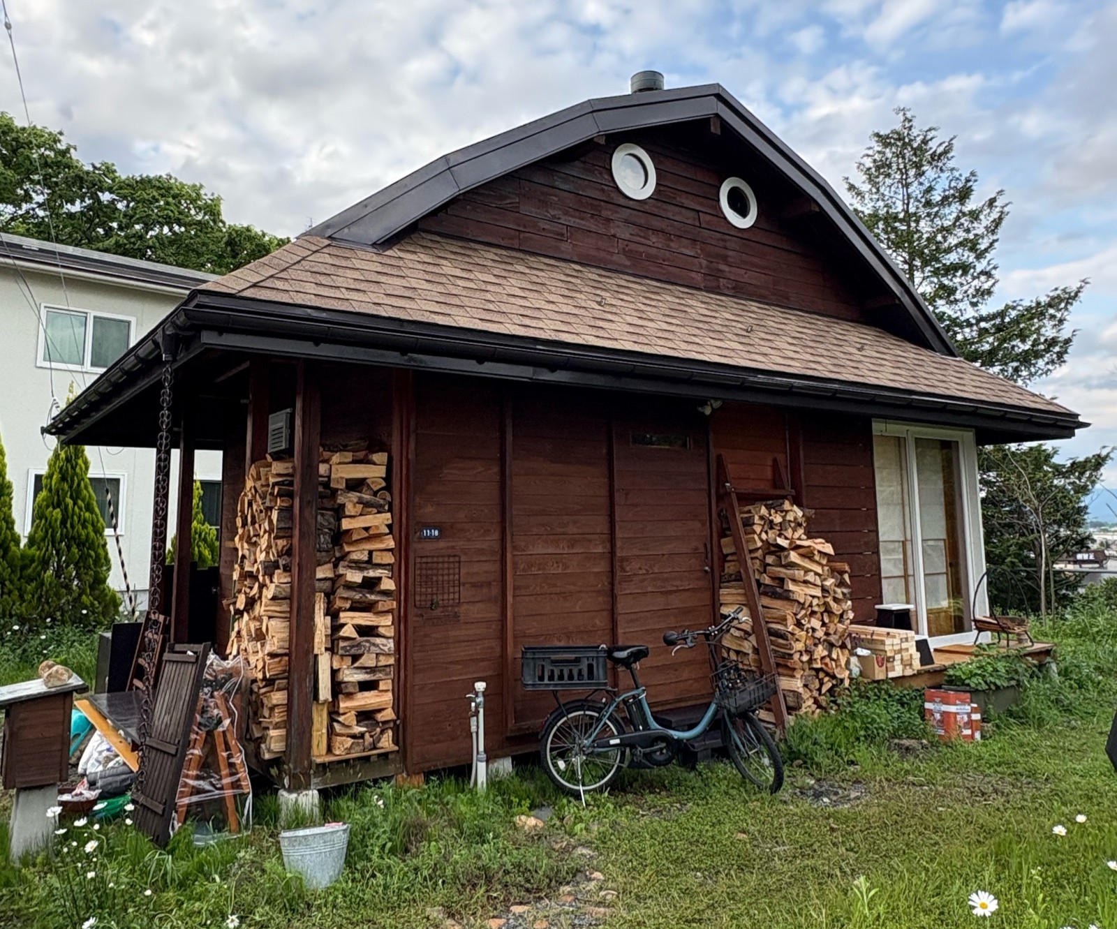 窓枠のホワイトをアクセントに、色あせしていた外壁も塗装したことで、より素敵なログハウスに😊♪