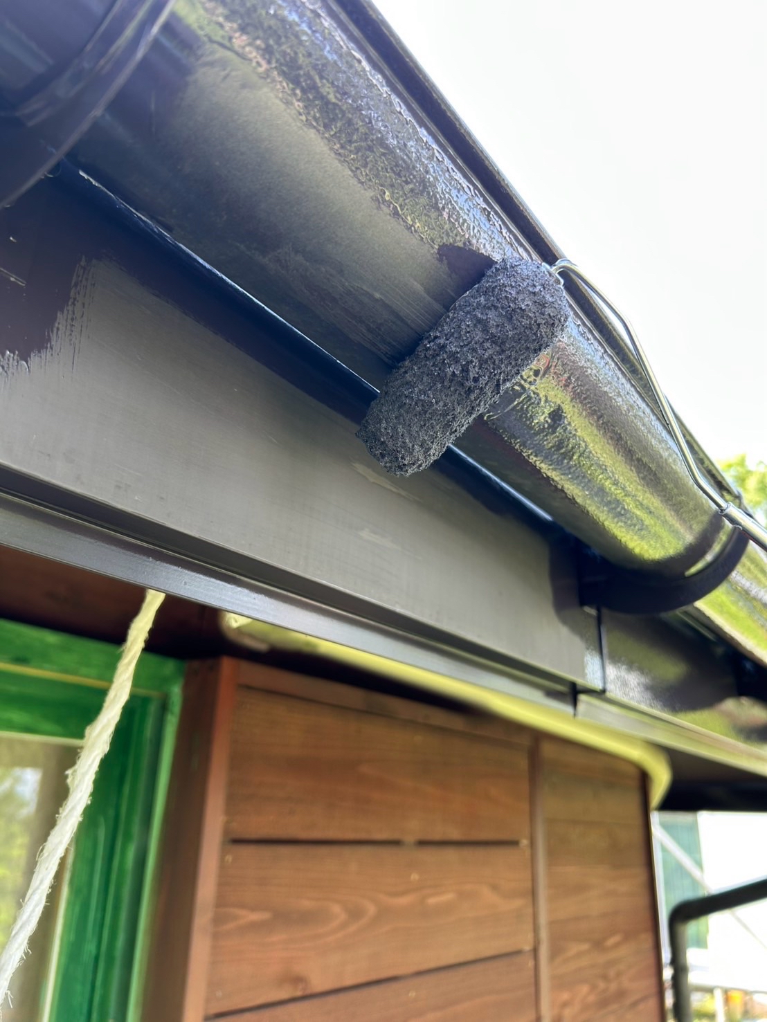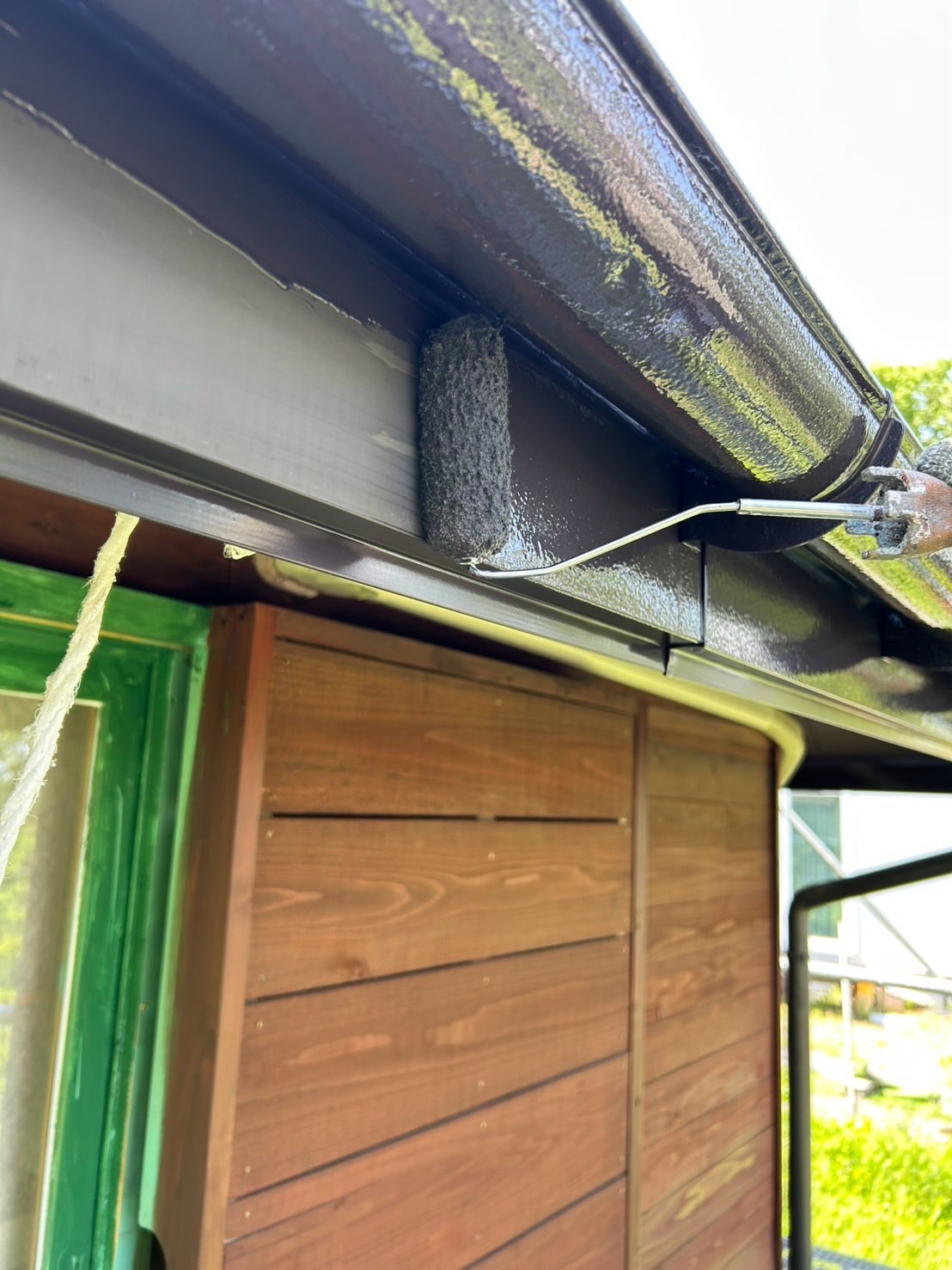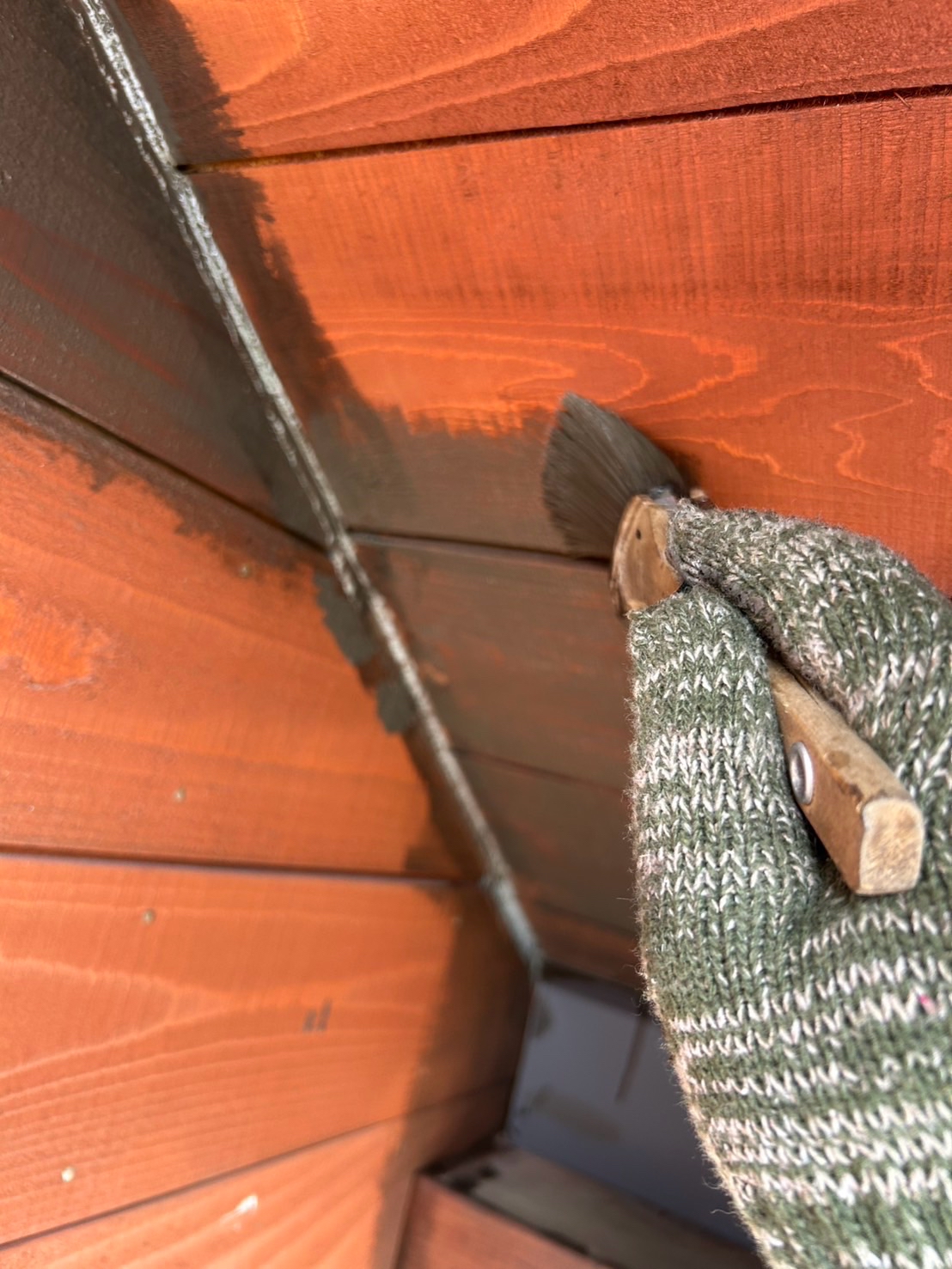 ログハウスの外壁をチョコレートで、窓枠をホワイトで塗装させていただきました。
