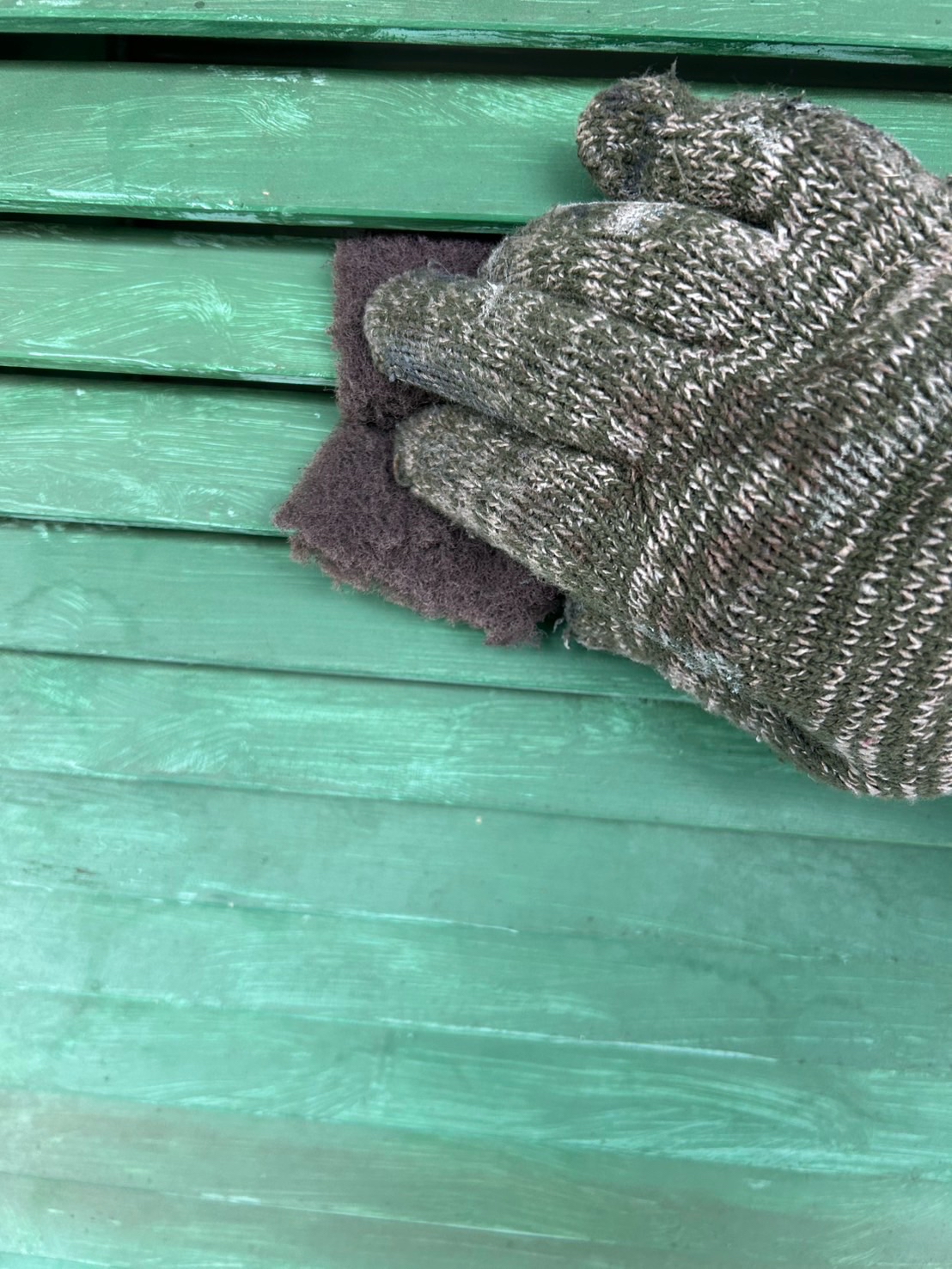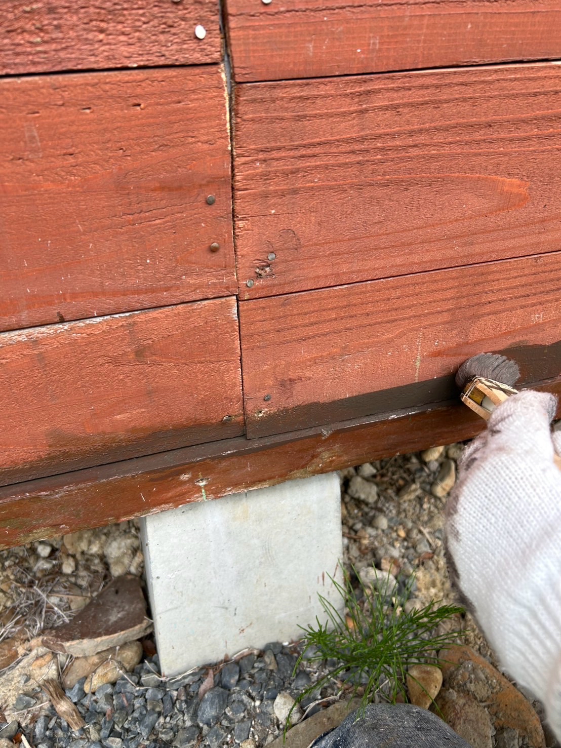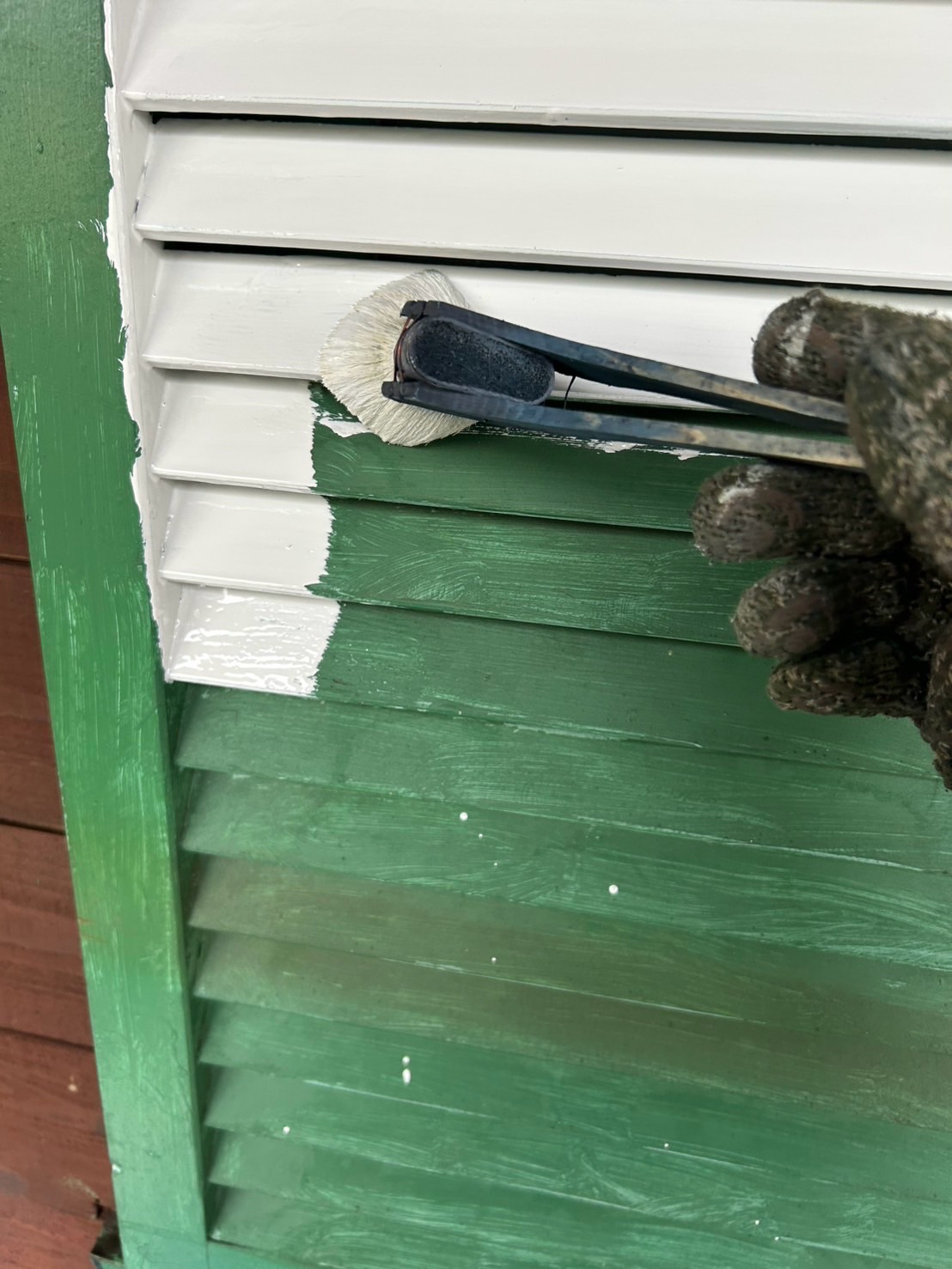 ログハウスの外壁をチョコレートで、窓枠をホワイトで塗装させていただきました。